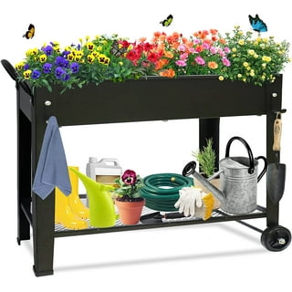 Khomo Gear Raised Garden Bed Box With Wheels Mobile Galvanized Steel Planter With Lower Shelf Ger 1177 The Home Depot