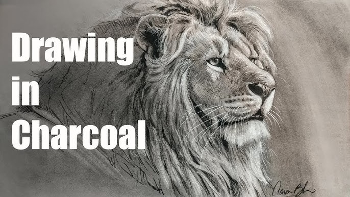 Huge Realistic Lion Drawing In Charcoal Youtube